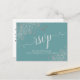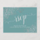 Estas bellas tarjetas postales RSVP, verde azuladas o turquesa, le permitirán responder fácilmente a su invitación a la boda. Presentan un diseño elegante con caligrafía de escritura de encaje y bonitos florales de Relieve metalizado de de plata y remolinos en las esquinas. La parte posterior es un formulario para que los huéspedes rellenen y regresen indicando el número de asistentes y la elección de las comidas. Hay espacio para entrar en un sitio web para que sus invitados puedan responder en línea si lo prefieren. Elegantes y sofisticadas, estas tarjetas RSVP son una maravillosa incorporación a su suite de invitados.