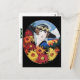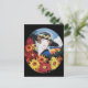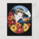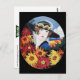 Ilustracion de alta moda, con clase y estilo Art Deco francés. Retrato de una hermosa joven mujer con un gorra negro con flores, blanco negro, rojo, amarillo azul. Guay, diseño moderno y artístico.