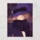Postal de arte fino con la pintura del artista austriaco Gustav Klimt (1862-1918), Lady with Gorra y Feather Boa (1909). Un retrato encantador de una mujer de moda con un gorra morado con una pluma y una cinta negra.