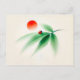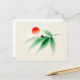 Minimalista pintura china moderna de tinta de una mariquita en bambú con un sol rojo.