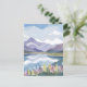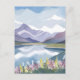 Lago de montaña | Postcarta de paisaje de acuarela floral