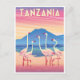 vintage, retro, travel, moderno, acuarela, clásico, Monte Kilimanjaro, Tanzania, África, Parque nacional,