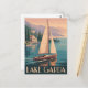 Disfrute de la tranquila belleza del lago de Garda al atardecer con esta postal que cuenta con un elegante barco de vela que desliza aguas tranquilas. Los tonos cálidos del sol que se pone reflejan en la superficie del lago, enmarcado por majestuosas montañas a lo lejos. Perfecto para los amantes de paisajes serenos, escenas náuticas y arte de viajes clásico.