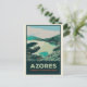 Un gran regalo para todos los amantes de las Azores ideal para ofrecer o mandar a un amigo, lindo postal retro original de ilustracion con vistas a la laguna de 7 ciudades, Azores Portugal