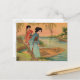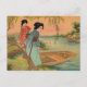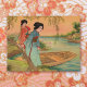 A primera vista, esta imagen tiene la apariencia de una impresión en madera. Tras un examen más detallado, se aprecia el elegante patrón de puntos de un cromolitograma de piedra de la época victoriana. Los suaves colores y el diseño ilustran una escena junto al lago japonés con dos geishas y un barco. Los sauces y el cielo del albaricoque enmarcan la colorida imagen. Es un diseño encantador para la decoración, la correspondencia personal y los accesorios. Te invita a tu toque personal.