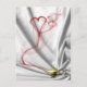 Este ilustracion muestra humo rojo con un corazón que sale de una lámpara de genio dorado sobre un fondo de terciopelo blanco.