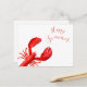 Náutica, verano y mar. Una langosta roja de fondo blanco. Guión de estilo con letras de la mano roja y texto: ¡Feliz verano!