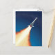 Ilustracion digital del lanzamiento de un cohete. El cohete se basa en el Ariane.