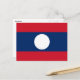 La bandera consiste en tres tiras horizontales, la tira azul media es el doble de la altura de las franjas rojas superior e inferior. En el medio hay un disco blanco, el diámetro del disco es 0,8 veces la altura de la banda azul. La bandera nacional de Laos fue adoptada en 1975, cuando el país se convirtió en una república popular. Es una de las pocas banderas comunistas que no usa la estrella de cinco puntas como emblema. Esta bandera reemplazó la bandera original de Laos, que era roja, con un elefante blanco de tres cabezas en un pedestal bajo una sombrilla.
