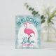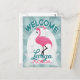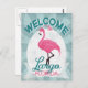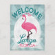 Largo Florida flamingo rosa. En el estilo vintage de los posters de viajes, dice "Bienvenidos a Largo, Florida" en color turquesa rosa, blanco y verde menta.