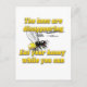 Esta graciosa postal sobre la desaparición de las abejas muestra una abeja graciosa que advierte: "Las abejas están desapareciendo; come tu miel mientras puedas". Lo que ocurre con el calentamiento global, la contaminación y otros problemas ambientales desconocidos, algunas especies están desapareciendo. Aunque la desaparición de las abejas tendría consecuencias más desastrosas para la vida en la tierra que la falta de miel, este dicho gracioso usa el humor para recordarle a la gente que las abejas ciertamente están desapareciendo.