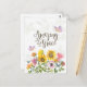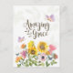 La postal Amazing Grace presenta un bonito diseño de jardín floral de acuarela con girasoles amarillos, flores praderas rosas y naranjas y mariposas. Presenta el querido mensaje cristiano de la Increíble Gracia de Dios*.