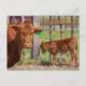 Gran expresión de una vaca madre cuando su bebé golpea la cabeza en un post.