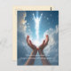 Manos abiertas soltando suavemente el alma de una persona en el cielo. Tranquila y maravillosa tarjeta de condolencia personalizado / tarjeta de simpatía.