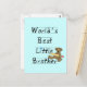 Un oso de peluche con un gran lápiz amarillo y un texto en línea tipo papel tipo niño que dice "Mejor Hermano Pequeño del Mundo" en camisetas, tazas, bolsas de té, sudaderas, botones y otros artículos.