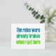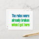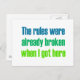 ¿Necesitas una excusa para esos momentos en que te atrapan rompiendo las reglas? ¡Aquí tienes: "Las reglas ya estaban rotas cuando llegué aquí". ¡Es la coartada perfecta!