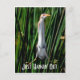 Esta postal representa a un Amarrón Mínimo, un tímido pájaro reservado de pantanos, a lo largo de algunas cañas. Las palabras dicen "Simplemente colgando"