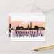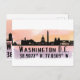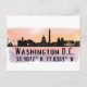 Postcard presenta la silueta de la ciudad de Washington DC con salpicaduras de color de agua y coordenadas del mapa de latitud y longitud