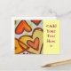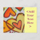 Los corazones rosados, rosados y naranjas se cruzan entre sí como nubes que se deslizan en un cielo. Un contorno verde traza cada corazón. Los puntos de color amarillo pálido son como el confeti entre los corazones. La pintura acuarela tiene una capa clara de oro y rosa encima. Los corazones de la risa son un detalle de la Inspiradora pintura de la palabra "Laugh". Personaliza esta postal con tu propio texto e imágenes.