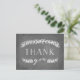 Tarjeta Post de agradecimiento plana con hojas de laurel dibujadas a mano, tipografía moderna y fondo de efecto de timbre.