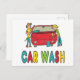 El diseño del lavado de coches muestra la limpieza de coches realizada por dos lavadoras de coches expertas. Uno usa una manguera de presión para limpiar la mugre y el otro usa esponja anticuada, agua de jabón y trabajo duro.