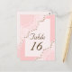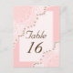Elegante encaje blanco con perlas boda rosa número de la mesa número postal con encaje blanco con perlas beige/crudo sobre rosa suave que cubre dos esquinas de un rectángulo blanco con borde rosa. Texto en castaño. Ten en cuenta que el encaje está "impreso" y no es real. Este elegante y chic diseño elegante y romántico forma parte de un conjunto boda y es perfecto para un boda de primavera, verano o otoño/otoño de moda.