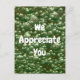 Impulsa la moral en la oficina con esta tarjeta de agradecimiento empresarial económica. Una foto de burbujas verdes flotantes proporciona el fondo a "Le Agradecemos". Un mensaje de agradecimiento y el nombre de su empresa aparecen en la parte posterior. Todo el texto se puede personalizar fácilmente para adaptarse a sus necesidades.
