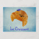 Croissant francés lindo. Éste es Croissant francés clásico pero no usual. Fresco y curruscante derecho de la panadería francesa de París. Pero cuando usted ve sus bigotes de la sonrisa y de la suposición con la boina azul, usted sabe simplemente que es francés típico. El Croissant lindo de Kawaii es el mejor diseño para cualquier fan del desayuno francés.