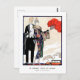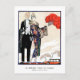 Le départ pour le casino de George Barbier (1923), ilustracion de moda. Lleva puesto un abrigo nocturno de Worth: tela oriental de flores de cerezo, mangas anchas, esposas de piel y cuello. Él lleva un sastre negro y corbata blanca.