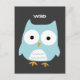 Postal de búho azul, "¿Quién?" El texto se puede personalizar. Una postal divertida para los correos de negocios y personales. Visita el mundo Doodle de Jenn para más postales animales y productos divertidos con este lindo búho.