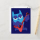 Ilustracion de un búho azul tocando una guitarra roja. ¿Qué piensas? ¿Rock o Blues?