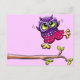 Postal Lechuza Bebé Primer Vuelo Rosa