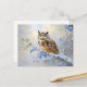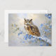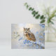 Postal Lechuza con pintura de flores azules