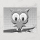 Un lindo búho en una rama. Caricatura original en blanco y negro con efecto de impresión de noticias aplicado a la imagen.