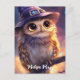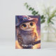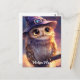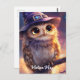 Una lechuza encantadora de ojos amplios vestida con un clásico gorra de brujas se sienta sobre una rama. La expresión caprichosa de la lechuza y el brillo ligeramente inclinado del gorra le dan un toque divertido, de temática Halloween.