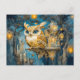 Postal Lechuza mística en un castillo de árboles en la no