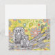 Un par de personajes de búho lindos y peculiares. Un diseño original, dibujado a mano, escaneado en diferentes orígenes para hacer una obra de arte de búho verdaderamente única. Una gran postal para los amantes de las aves y las lecheras por igual.