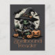 Leer brujas verdes con murciélagos y jack-'o-lanterns y el texto "Lector de ortografía".