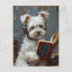 Un adorable y gracioso perro maltés escucha música y lee arte generado por IA