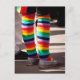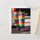 Piernas vestidas con cálidas piernas de arco iris en celebración del evento del orgullo LGBTQ. Esta postal es totalmente personalizable.