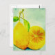 Un limón y medio. Pintura de acuarela tradicional de limones amarillos brillantes en un estilo retro vintage con un suave fondo verde.