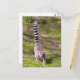 Lémur de cola anillada (Lemur catta) visto por delante y caminando sobre hierba con cola en el aire