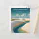Descubre uno de los paisajes más increíbles del mundo con esta impresionante tarjeta postal de viaje de Lençóis Maranhenses Brasil. Este cautivador diseño ilustrado presenta la maravilla natural única del Parque Nacional Lençóis Maranhenses, donde vastos campos de dunas de arena blanca están intersectados de manera única por impresionantes lagunas azules y verdes.
