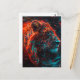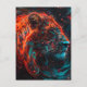león resaltado por rastros de luz de neón turquesa rojizo, creando una escena cósmica y cautivadora.