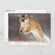 Tarjeta animal que muestra un vaquero imposante corriendo por la nieve. El cougar (concolor Puma), también comúnmente conocido como león de montaña, puma o catamount, es una gran felid de la subfamilia Felinae nativa de las Américas. Su gama, desde el Yukón canadiense hasta los Andes sureños de América del Sur, es la más grande de los grandes mamíferos terrestres silvestres del hemisferio occidental. Un excelente depredador de tallos y emboscadas, el cougar busca una amplia variedad de presas. Entre las fuentes principales de alimentos figuran los ungulados, como los ciervos, las alces, los alces y los ovinos, así como el ganado doméstico, los caballos y las ovejas, en particular en la parte septentrional de su gama. También cazará especies tan pequeñas como insectos y roedores. Este gato prefiere los hábitats con arbustos bajos densos y zonas rocosas para acosar, pero también puede vivir en áreas abiertas.