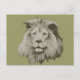 La cara y la forma de un león macho en blanco y negro.