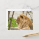 Postal León masculino descansando en hierba