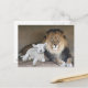 León y cordero juntos, obviamente el resultado de dos fotos combinadas, también disponibles en tarjeta de felicitación