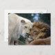 Adorable fotografía de un león y una leona que se nublan entre ellos.