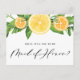 ¿Serás mi dama de honor? Invite a su familia y amigos a formar parte de su boda con esta tarjeta de presentación de la fiesta nupcial. Cuenta con ilustraciones acuáticos de limones, naranjas y vegetación. Personalice agregando nombres y mensajes. Esta tarjeta de presentación de limón es perfecta para bodas de verano.